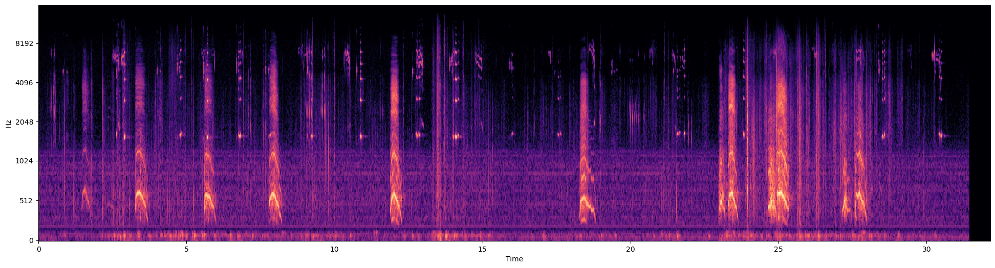 We shall now extract mel-spectrogram from the wave data. There’re many articles out there explaining these, so I would refrain from going into detail. In short, audio is an analog signal that we convert into digital format with a certain sampling rate. Because it is a signal, we can run Fourier Transforms (FT) to decompose it into individual frequencies. But given the non-periodic nature of human speech or bird calls etc., we instead do STFT (Short Time FT) over a window. There can be many frequencies overlapping at any given point of time and these can be visualized as a spectrogram. Because of the non-linear nature of our innate hearing capabilities & constraints, we convert these frequencies to Mel Scale. Mel-Spectrograms are just that.